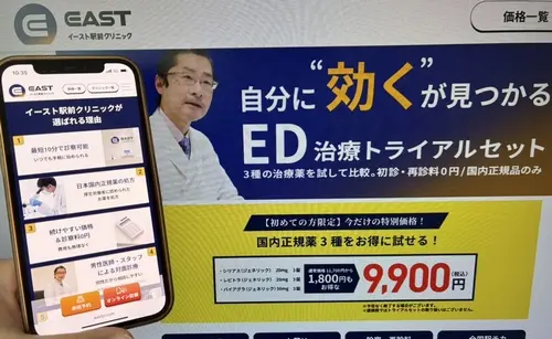 イースト駅前クリニックは、ED・AGA・メディカルダイエットを専門に診療する男性向けの総合クリニックです。全国に42院を展開しており、オンライン診療と対面診療のどちらも選べるのが大きな魅力です。忙しい方でも自分のペースで治療を続けられる環境が整っています。